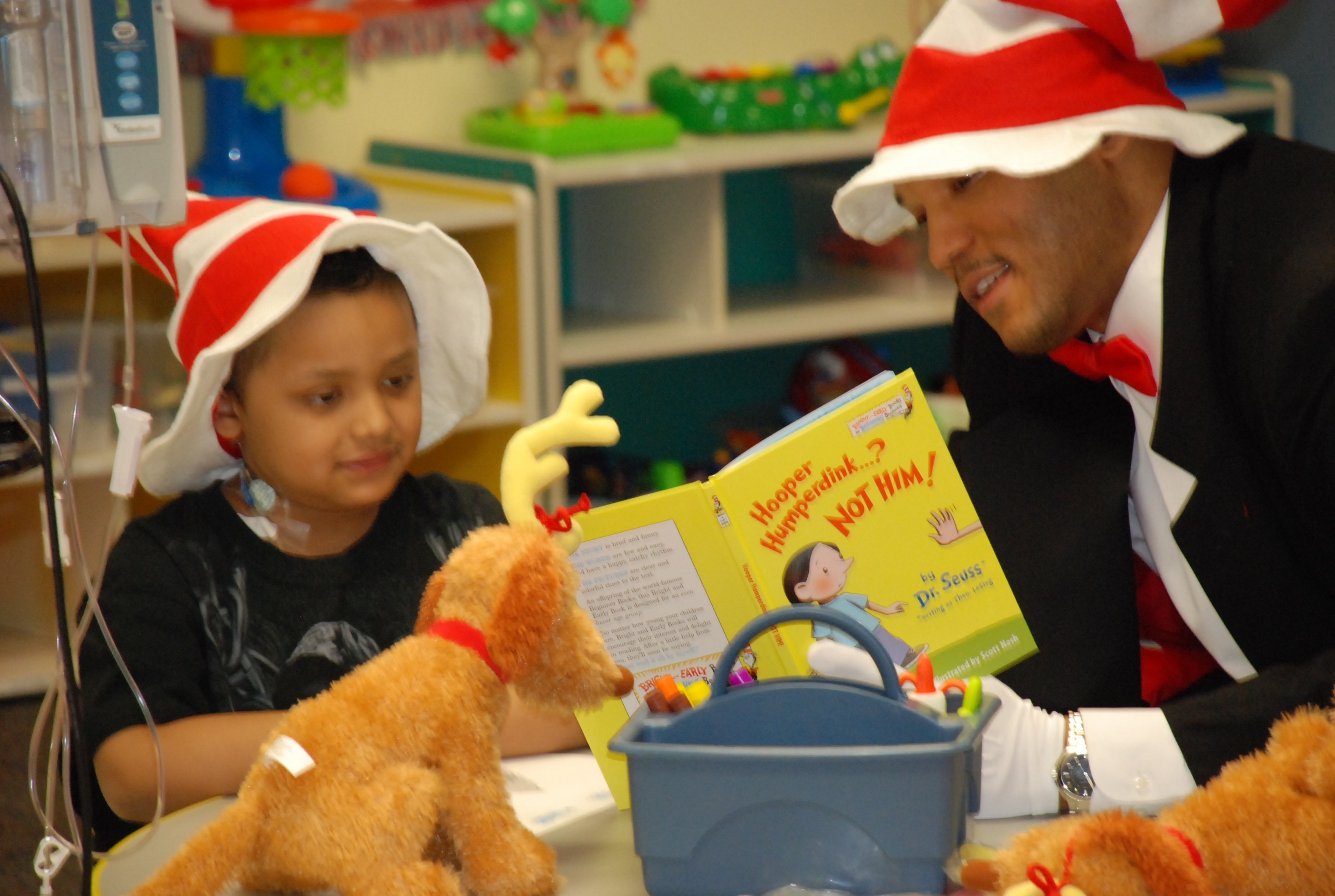 I had the pleasure of being The Cat in the Hat a few years back as part of The Huddle Up Foundation of Houston for Theater Under The Stars at M. D. Anderson Child Cancer Center in Houston. The Cat in the Hat is the central character in many of Dr. Seuss’s works.