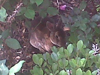 The object of fear was earth tone brown with a brownish fluffy tail. It looked just like Peter Rabbit from the story books.  We walk closer and I calm down my terrified angel. I explain to her there is no reason to be afraid and she calms down slowly. She goes into an observation mode.
